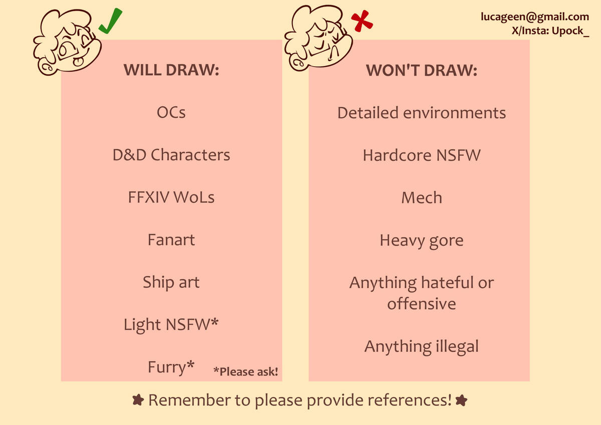 50% payment upon sketch being approved and 50% upon completion.Payment via Paypal (GBP)Once payment has been received, the full quality piece will be sent over.The artwork is for personal use only!Not for AI use.Not for tracing or editing.Please be respectful!